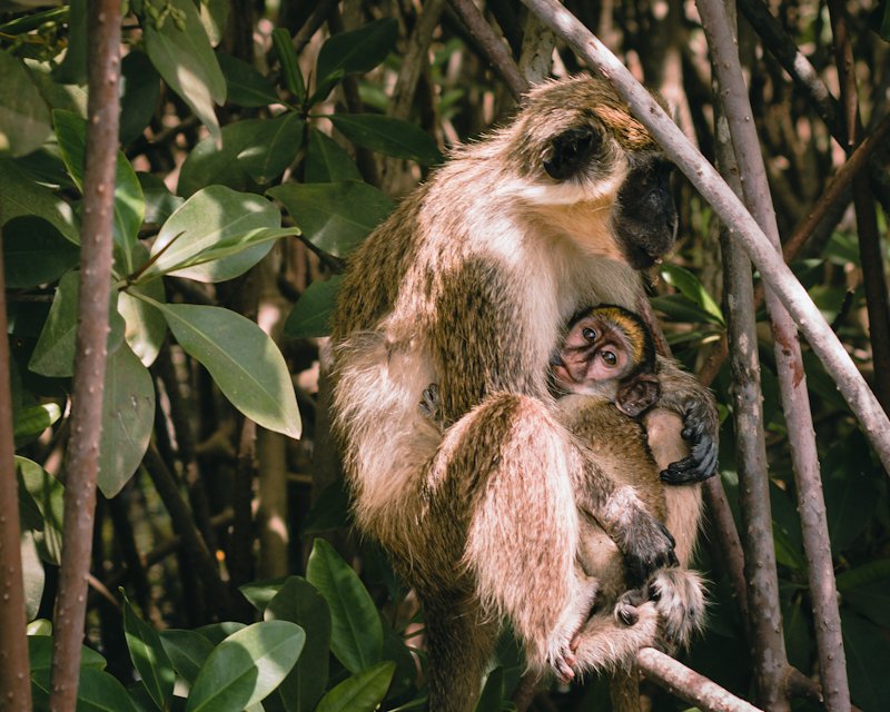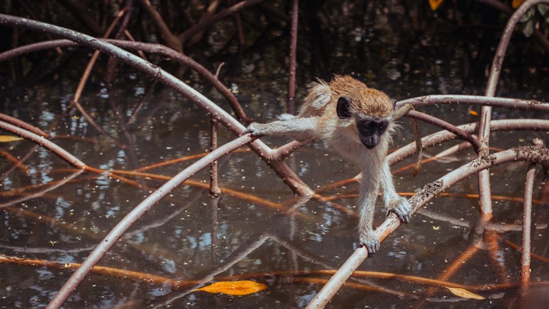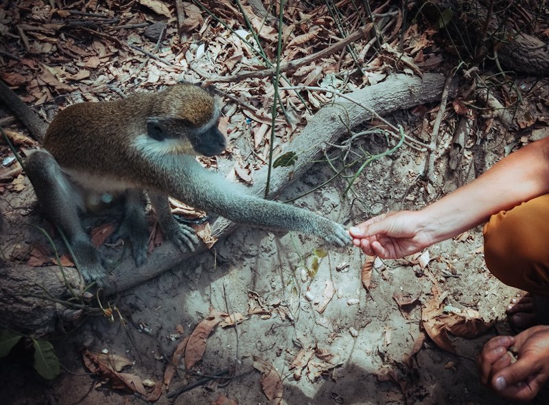 - Interacting and feeding monkeys in their natural habitat, observing hyenas, walk through the jungle